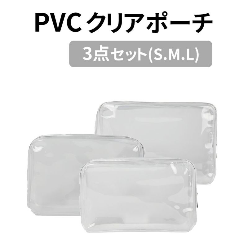 3. クリアポーチ 3点セット (S,M,L各1個) 化粧 メイク ポーチ 防水 メール便1セットまでOK