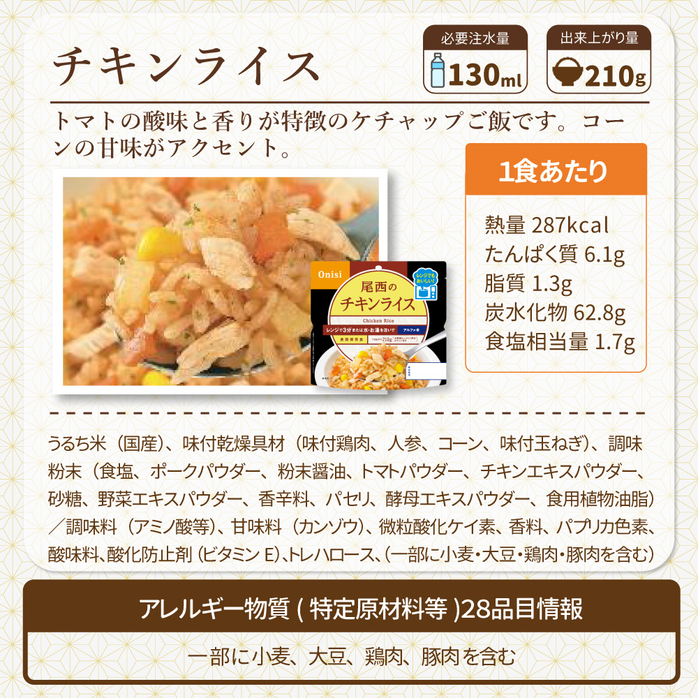 3. 非常食 尾西食品 尾西のレンジ+(プラス) チキンライス 5年保存 [メール便4個までOK]