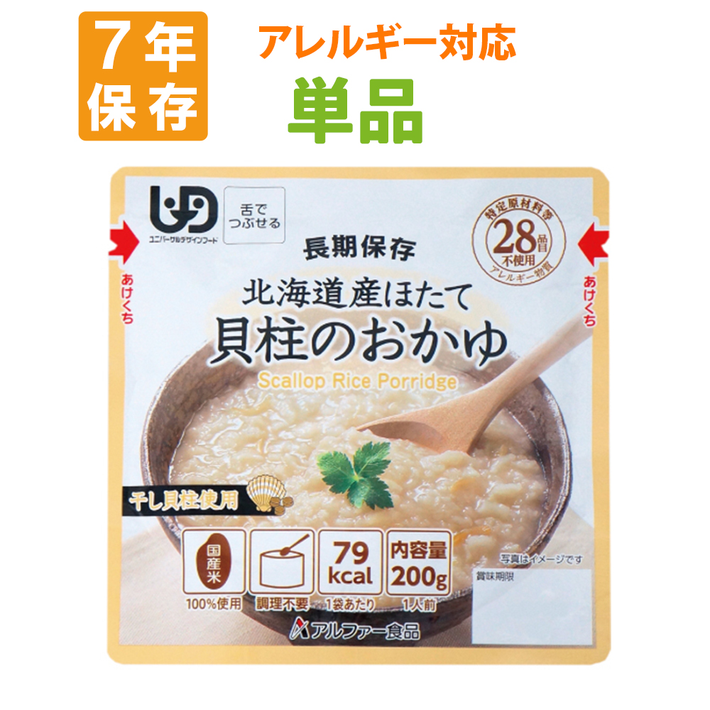 6. 非常食 北海道産ほたて貝柱のおかゆ レトルト 防災食 保存食 メール便4個まで