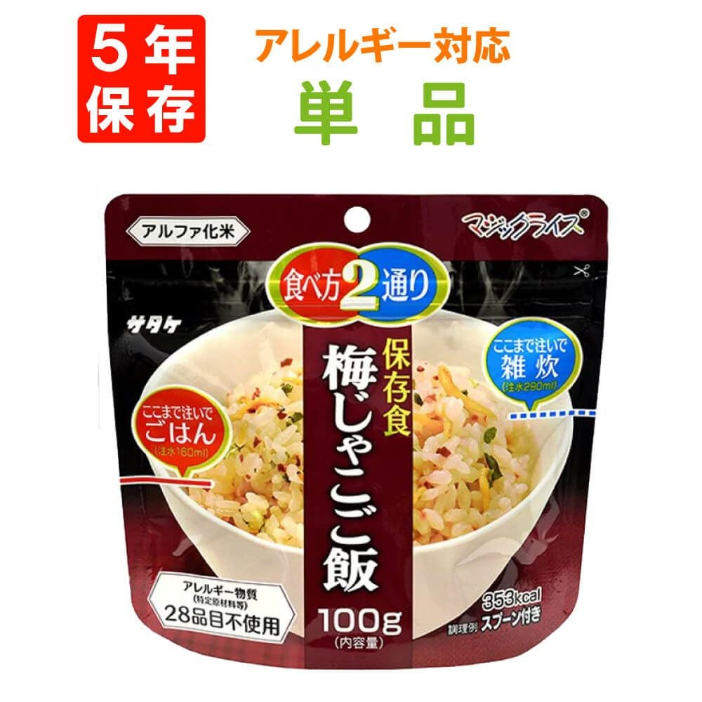 他の画像を見る アウトドア・海外旅行にも最適!お湯か水を適量加えるだけ!ご飯か雑炊、2通りの食べ方が出来ます! 非常食サタケマジックライス【梅じゃこご飯】5年保存 [メール便4個までOK] 公式サイト特別価格 ¥ 369 税込 詳細を見る お気に入りに登録する