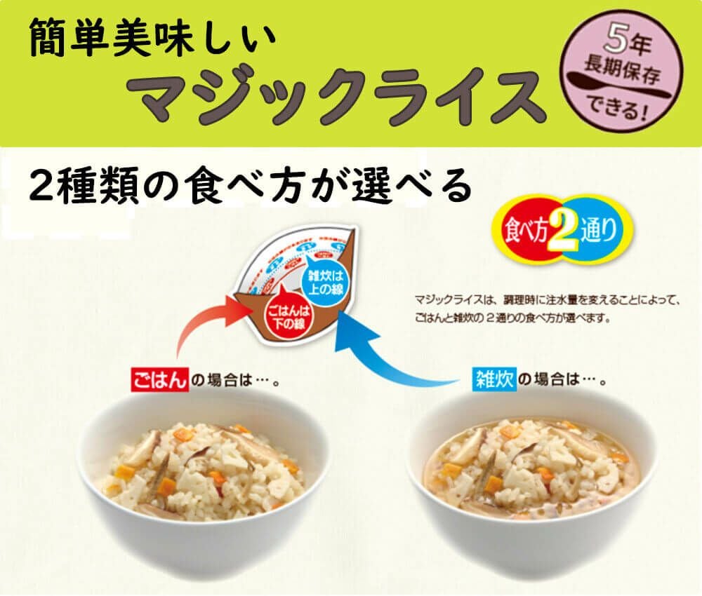 他の画像を見る アウトドア・海外旅行にも最適!お湯か水を適量加えるだけ!ご飯か雑炊、2通りの食べ方が出来ます! 【白飯50食セット】サタケのマジックライス5年保存 公式サイト特別価格 ¥ 13,851 税込 詳細を見る お気に入りに登録する