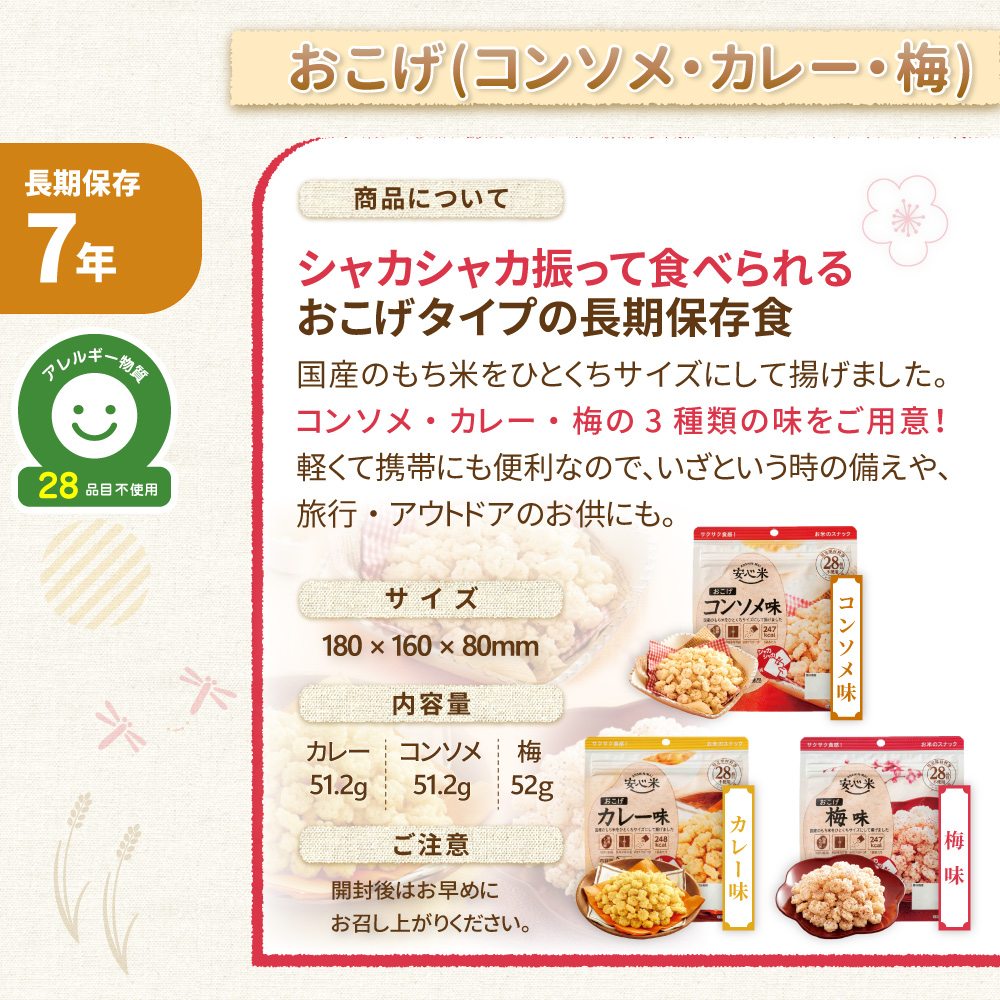 おこげ・米粉クッキー:製造より7年保存(賞味期限6年半以上の商品をお届けします)