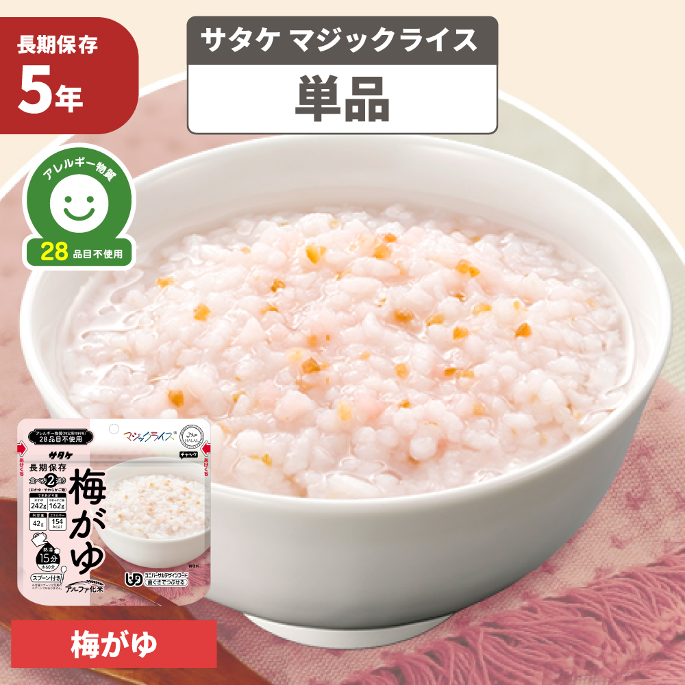 5. 非常食 マジックライス 梅がゆ 1食 単品 防災グッズ アレルギー対応 28品目不使用 ごはん アルファ化米 防災食 サタケ メール便6食までOK