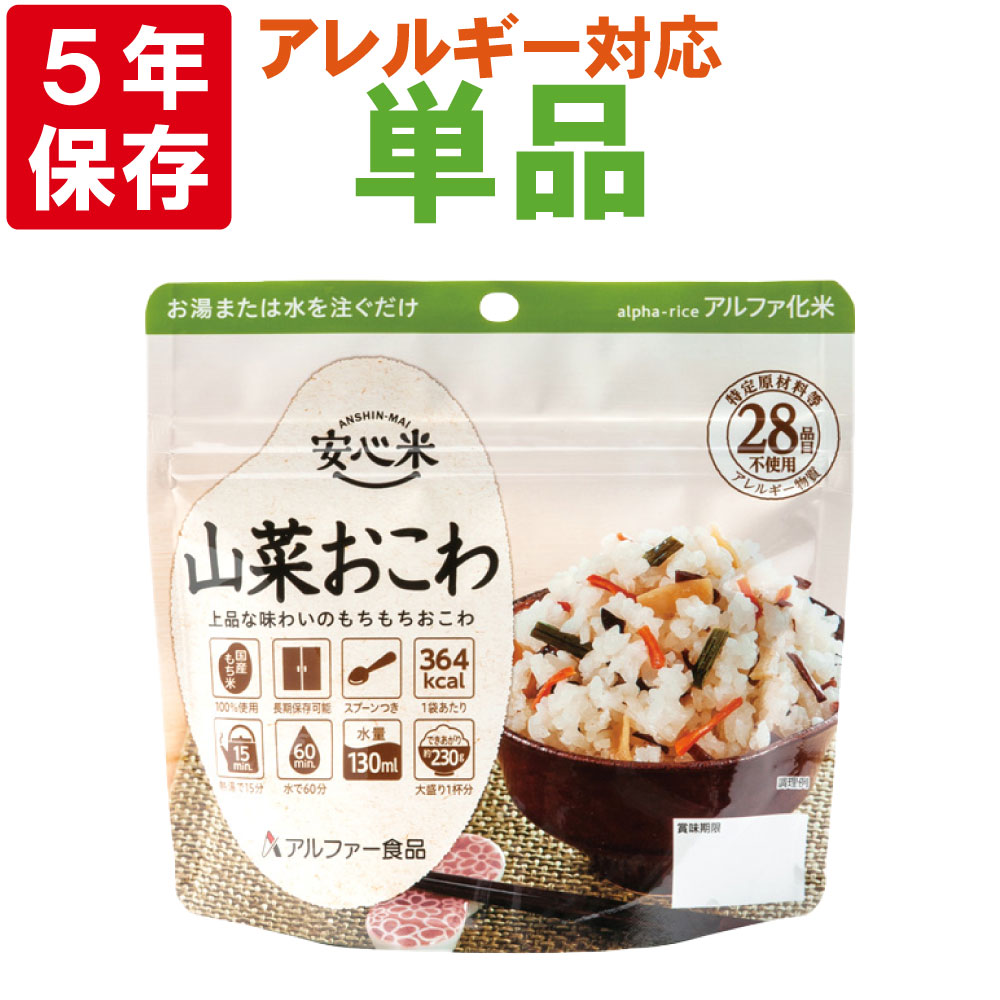 7. 非常食 アルファ米 安心米「山菜おこわ」5年保存 国産米100% [メール便4個までOK]