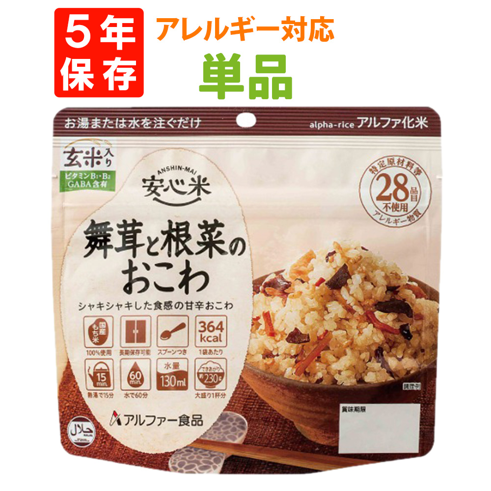 アルファ米の『アルファ』とは、お米に含まれる「デンプンの状態」を示しています。お米は70~80%がデンプンでできています。生デンプン(生米)は、そのまま食べてもまずく、消化しにくいため栄養になりにくいのですが、水を含ませ熱を加えると、美味しくて、しかも消化しやすいデンプンに変わります。アルファ化したご飯は水分を除く(乾燥)と、生デンプンへ戻らず「アルファ化デンプン」の状態を保ち続けます。そして、このアルファ米にお湯や水を加えると、煮炊きせずとも、軟らかく美味しいご飯ができ上る、という訳です。