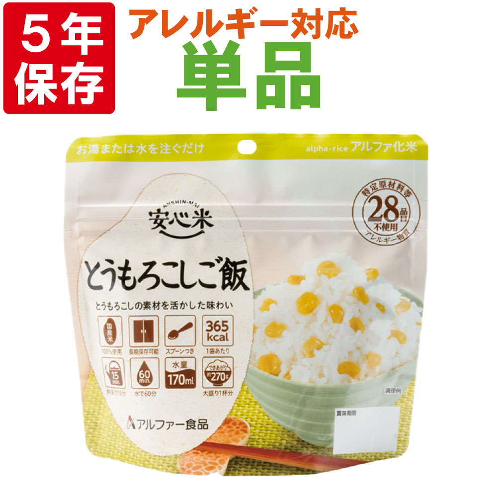 特定原材料等(アレルギー物質)28品目不使用 安心米「とうもろこしご飯」 5年保存アルファ米 [メール便4個までOK]