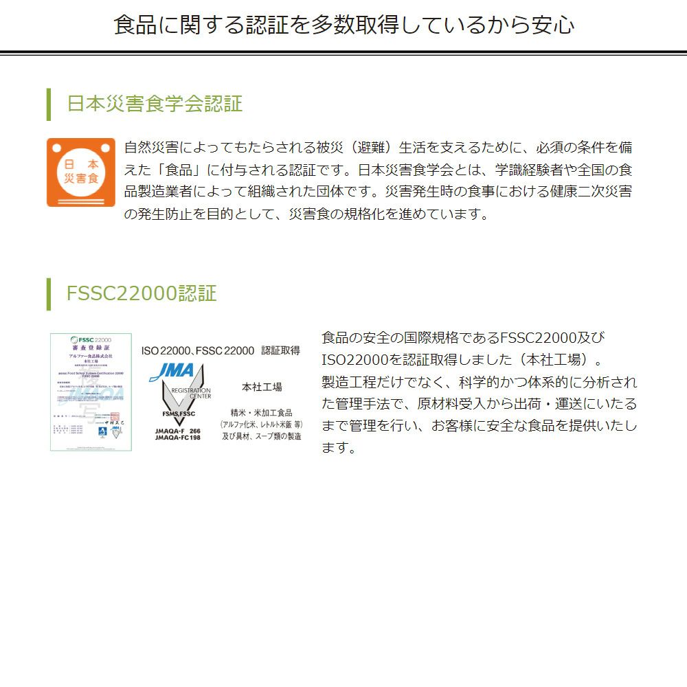 他の画像を見る 火も水も使わずにすぐに食べられる非常食として最適なおこげスナックです。 非常食 安心米 おこげ ぜんざい 単品 アレルギー対応食 7年保存 [メール便2個までOK] 公式サイト特別価格 ¥ 405 税込 詳細を見る お気に入りに登録する