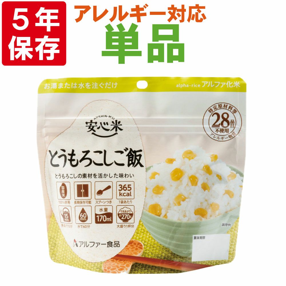 他の画像を見る 特定原材料等(アレルギー物質)28品目不使用 安心米「とうもろこしご飯 50食セット/箱」 5年保存アルファ米 公式サイト特別価格 ¥ 16,929 税込 詳細を見る お気に入りに登録する