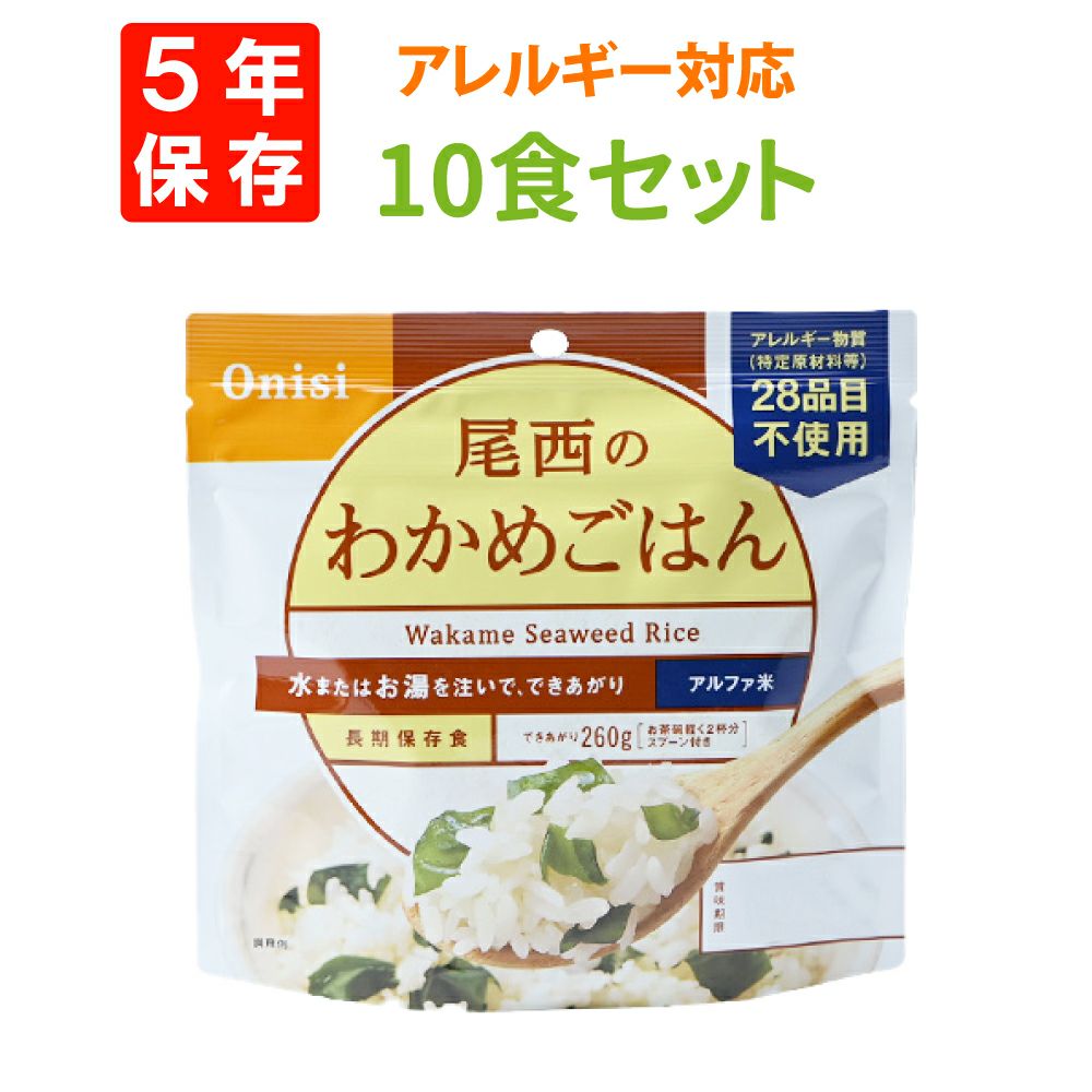 他の画像を見る アレルギー対応食(アレルギー物質 特定原材料等28品目不使用)100%国産米使用 スプーン付き 尾西食品「わかめごはん 10食セット」5年保存食 公式サイト特別価格 ¥ 3,457 税込 詳細を見る お気に入りに登録する