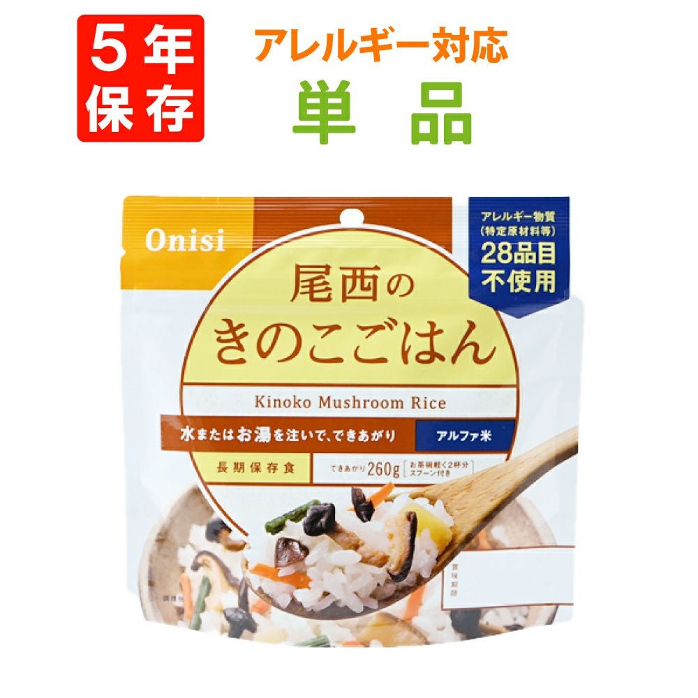 他の画像を見る アレルギー対応食(アレルギー物質 特定原材料等28品目不使用)100%国産米使用 スプーン付き 尾西食品「きのこごはん」5年保存非常食 [メール便4個までOK] 公式サイト特別価格 ¥ 405 税込 詳細を見る お気に入りに登録する