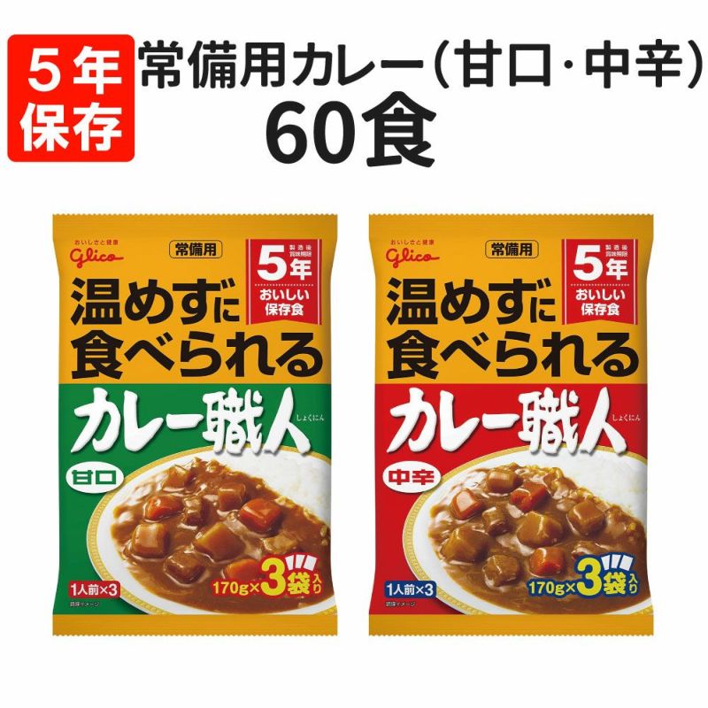 多くの方に受け入れられる“国民食”カレーの保存食 [5年保存][常温食可]常備用カレー職人 60食セット 辛さが選べる (甘口/中辛)いずれか1種