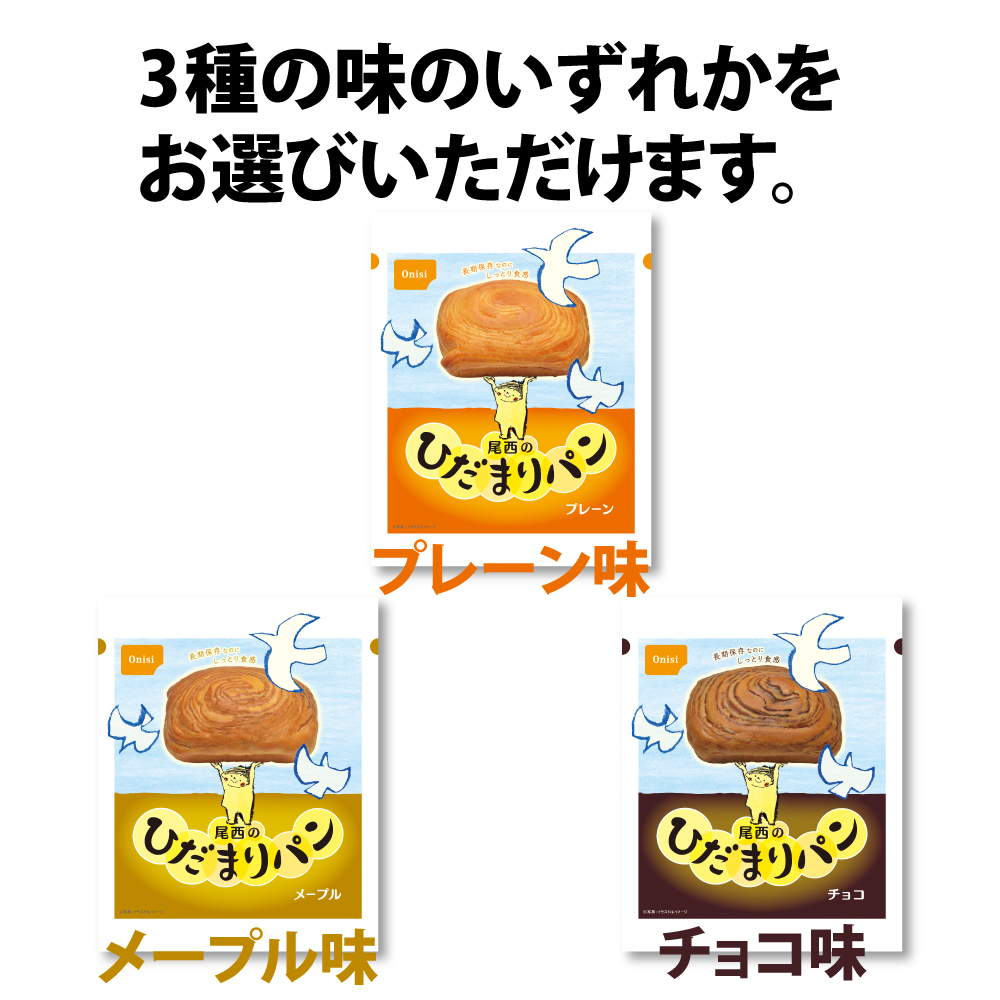 3. 5年保存 非常食「尾西のひだまりパン」選べる3種類(プレーン/メ ープル/チョコ) 単品
