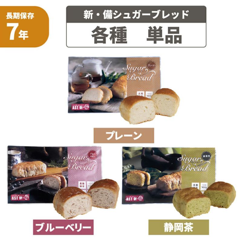 3. 非常食 AST 新・備 シュガーブレッド プレーン 静岡茶 ブルーベリー 7年保存 卵不使用 防災食 長期保存 パン シュガーブレッド プレーン ブルーベリー アスト株式会社