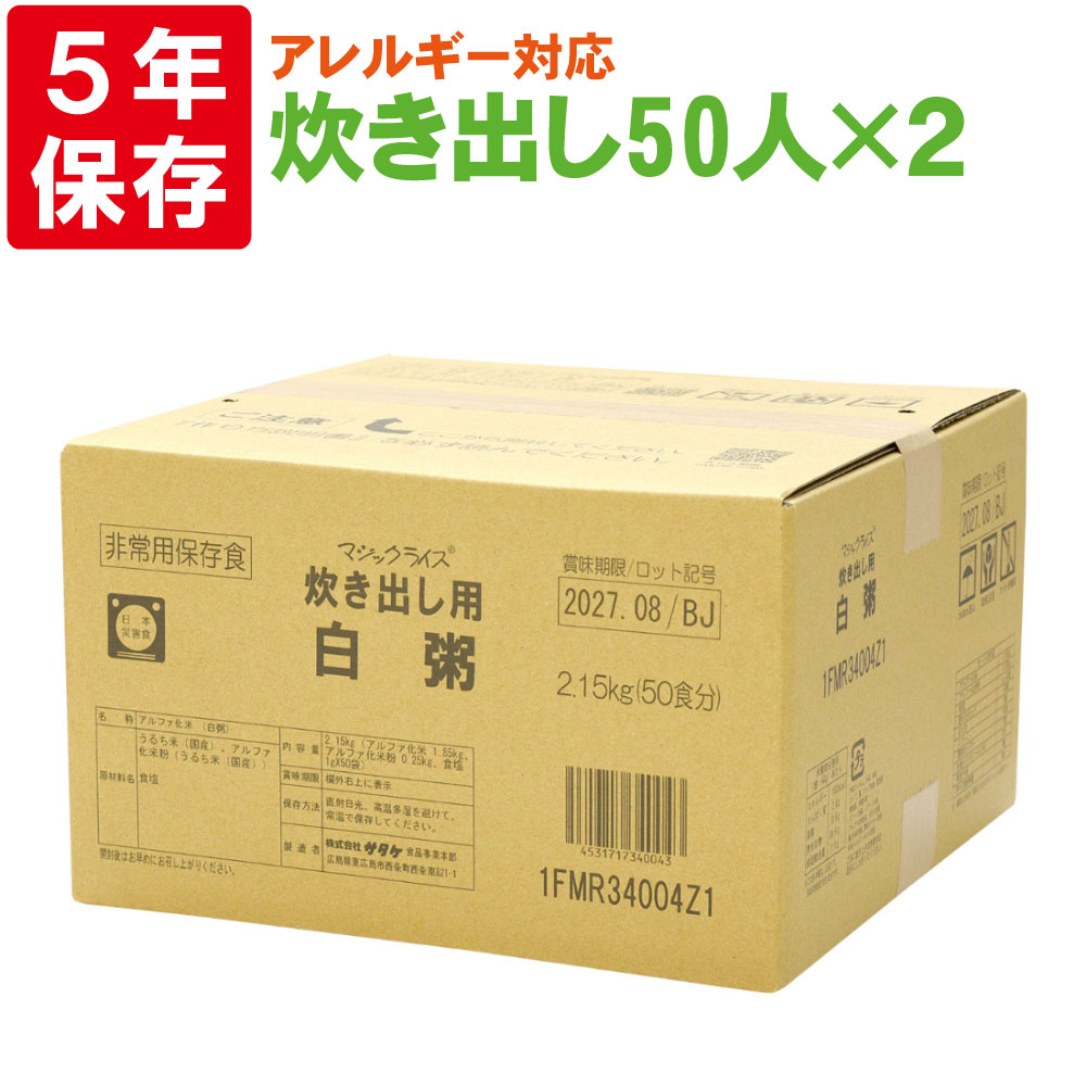 4. サタケマジックライス炊き出し用(白粥)アレルギー対応食50人分×2セット保存期間5年