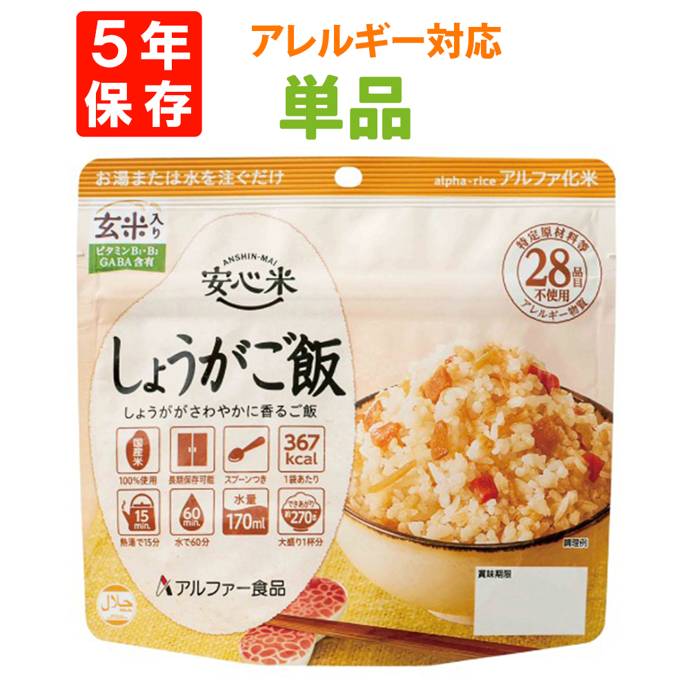 安心米 アルファー食品 アルファー アルファ米 アルファー米 アルファ化米 ハラール ハラール認証商品 非常食 非常食セット 保存食 保存食セット 防災食 しょうがご飯 しょうが アレルギー 登山 キャンプ アウトドア レジャー おすすめ