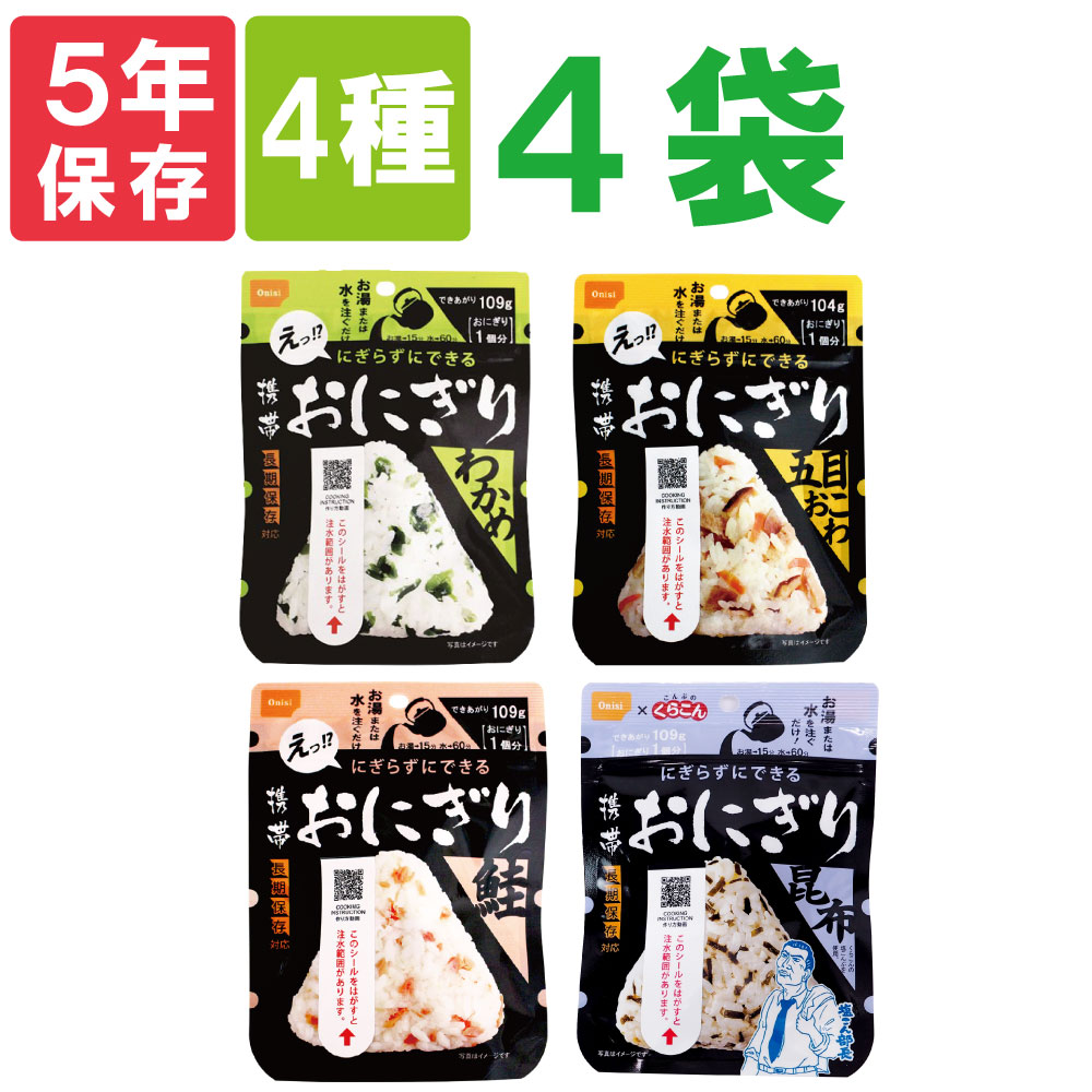 3. 【メール便OK(2セットまで)】尾西の携帯おにぎり「4種類 4袋セット」 わかめ・鮭・五目おこわ・昆布