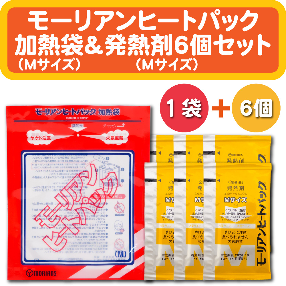 【メール便OK(1セットまで)】モーリアンヒートパック Mサイズ・加熱袋1個 + 発熱剤6個セット