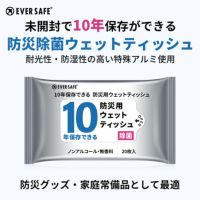 ※製造より10年保存(9年半以上保証) 【関連ワード】 衛生用品 長期保存 ノンアルコール 無香料 防災グッズ 災害 水害 地震 台風 洪水 避難 耐光性 防湿性 20枚入り 介護 アウトドア 食事 断水 停電 携帯用 備蓄品 外出 清掃