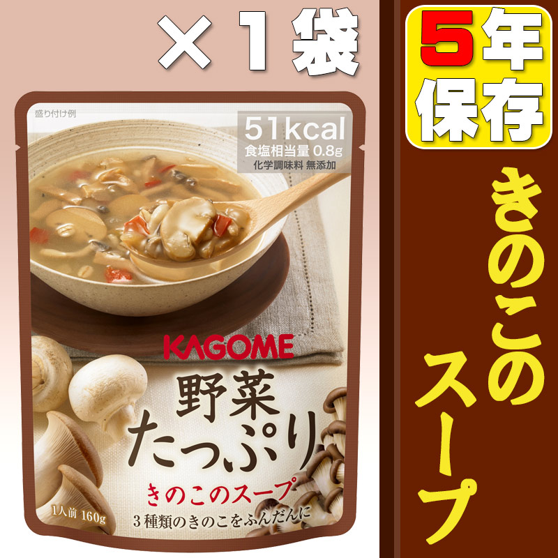 化学調味料無添加!KAGOMEの常温でもおいしいレトルトパウチ非常食 【メール便OK(6個まで)】備蓄食品カゴメ野菜たっぷりスープ「きのこのスープ」