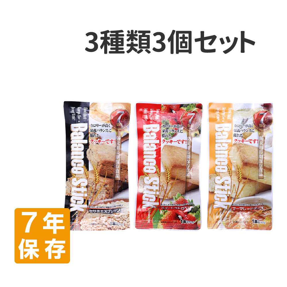 3. 【メール便OK(1セットまで)】7年保存食バランススティック【3種類3個セット】
