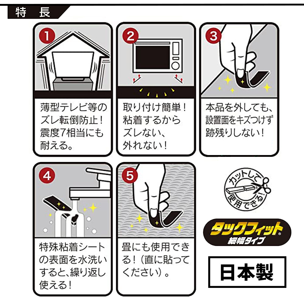 家具転倒防止 タックフィット 細幅タイプ TF-1040CL-3 粘着 固定マット 地震対策 【メール便OK15個まで】
