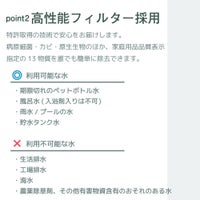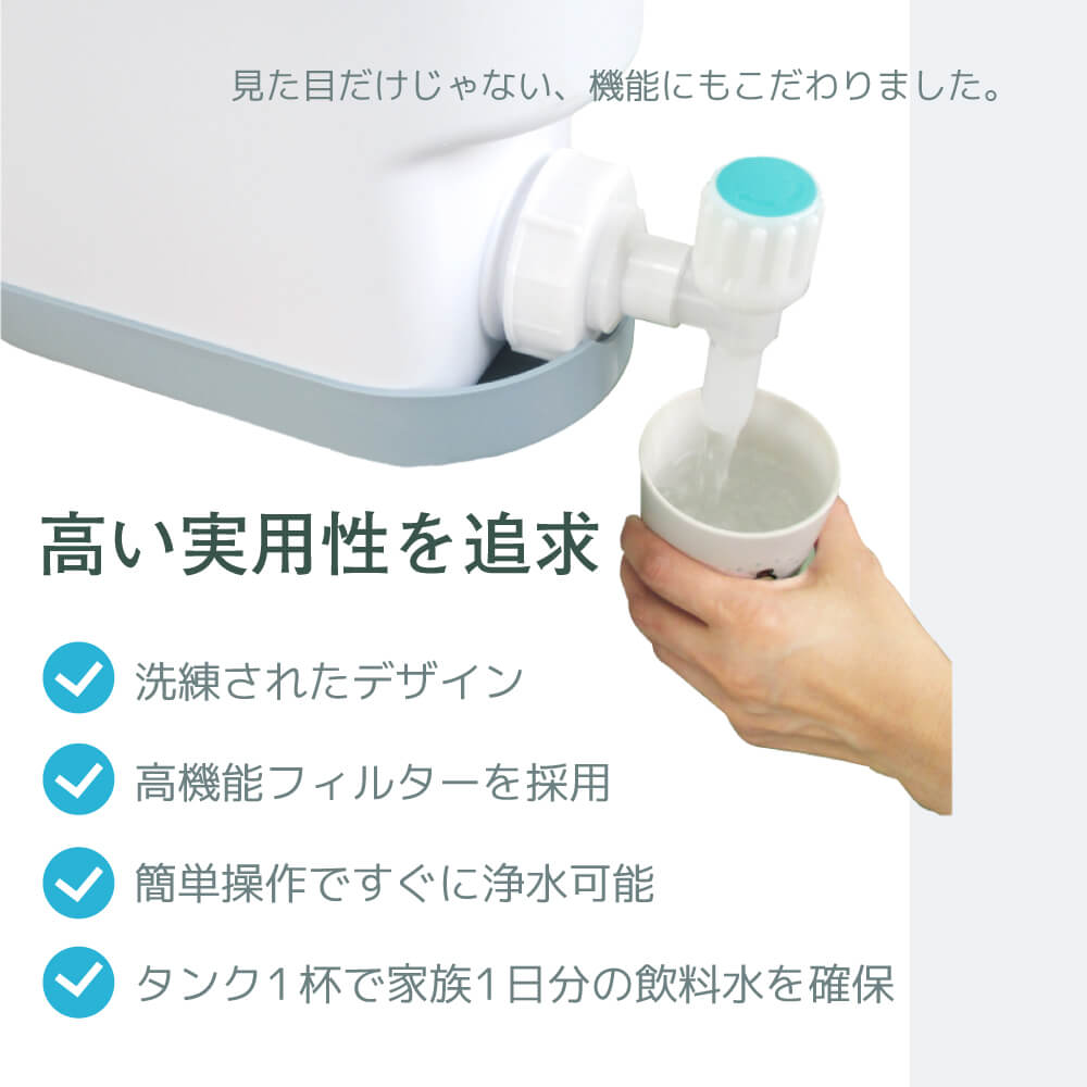 ・タンク1杯で家族1日分の飲料水を確保(浄水能力300L/時(最大))