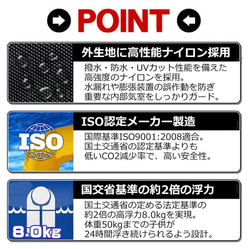 他の画像を見る ライフジャケット ベストタイプ!浸水感知で自動膨張のライフジャケット!CE・ISO認証安全規格取得品! ライフジャケット ベストタイプ(自動膨張式) 公式サイト特別価格 ¥ 6,545 税込 詳細を見る お気に入りに登録する