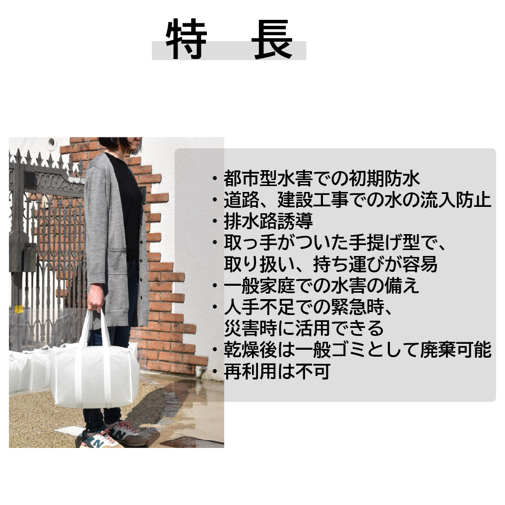 水で膨らむ 吸水土のう 60枚 (3枚入x20袋/ケース) BOX型 持ち運び 取っ手付き バッグタイプ 吸水 土嚢袋 緊急簡易土のう 膨張式 水害対策 防災グッズ 台風
