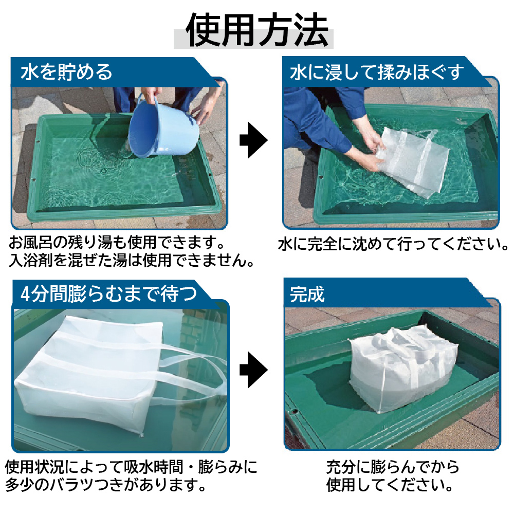 ・上記のような洪水や長時 間設置が必要になる場合は、普通の土を入れた土のうをおすすめします。