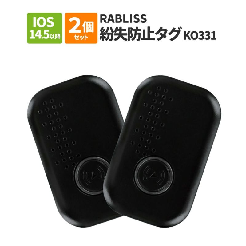 【メール便4セットまで】RABLISS 紛失防止タグ KO331 2個セット iPhone iPodtouch iPad専用 IOS14.5以降 財布 鍵 ペット 迷子防止 脱走対策 災害時