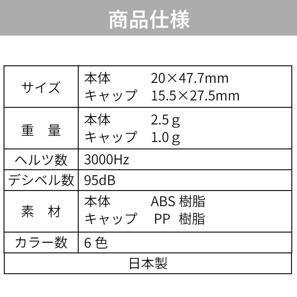 他の画像を見る 人の耳に聞こえやすい3000HZ・95dbのホイッスル 防災・防犯に 緊急用ホイッスル エマージェンシーホイッスル 防災 防犯 スリム コンパクト 小さい 日本製 EF220 PEACEUP メール便100個まで 公式サイト特別価格 ¥ 83 税込 詳細を見る お気に入りに登録する