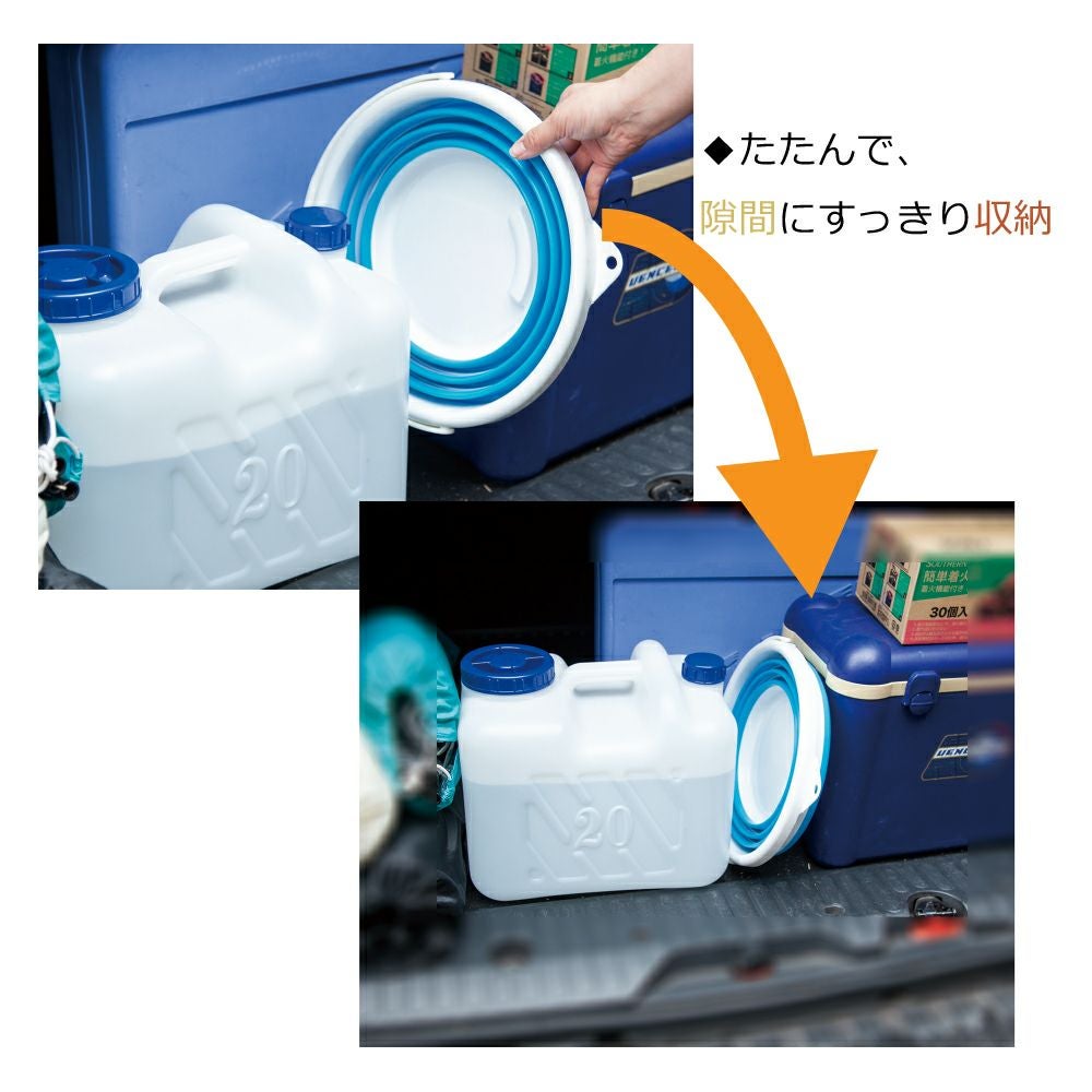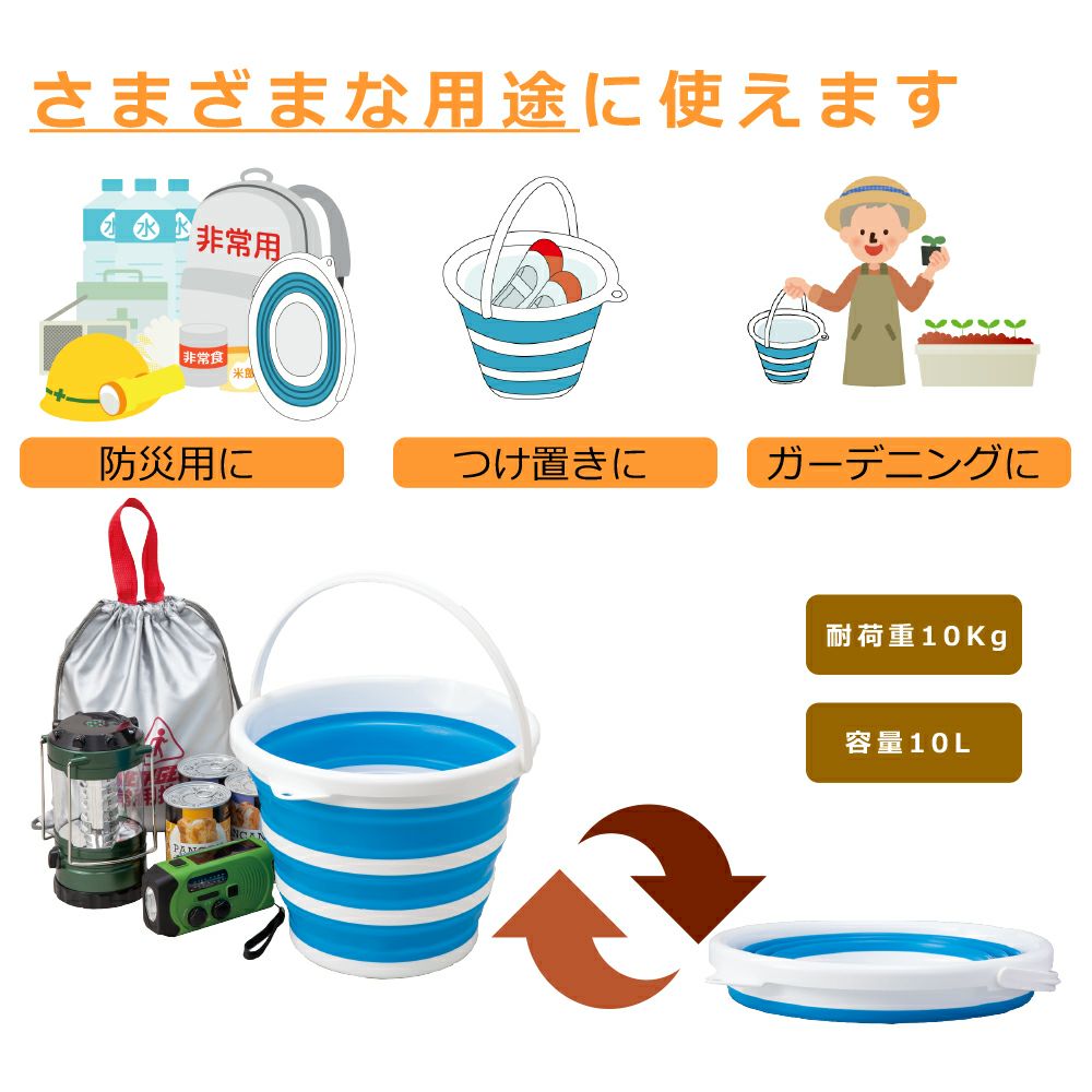 他の画像を見る スリムに収納!防災用にもオススメ。シリコン/プラスチック二層構造でしっかり自立!ぐにゃぐにゃにならずにきれいにたためます。 折りたたみバケツ 10L シリコン たためる 伸縮バケツ 公式サイト特別価格 ¥ 1,400 税込 詳細を見る お気に入りに登録する