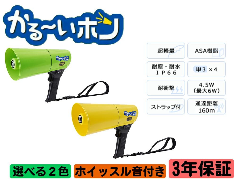 他の画像を見る ホイッスル音付。イエロー or グリーン 電池込みでペットボトル(500ml)より軽いのにパワフル機能。 拡声器 ノボル電機 かる~いホン TD-504G / TD-504Y 4.5W ホイッスル音付 (旧 TS-534) 公式サイト特別価格 ¥ 21,109 税込 詳細を見る お気に入りに登録する