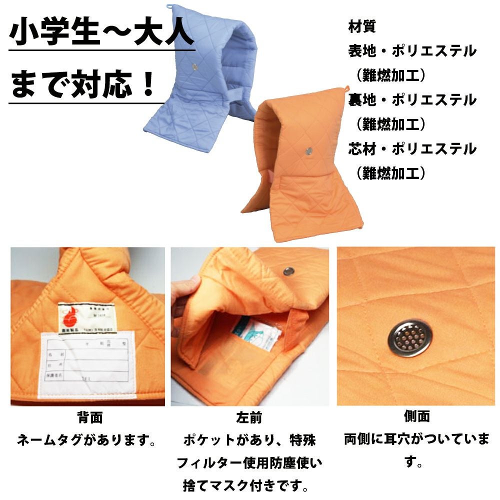 他の画像を見る 座布団式カバーと防炎協会認定ずきんのセット!衝撃吸収性試験 防炎試験 洗濯試験 接触皮膚障害試験クリア 防災頭巾 カバー付きセット 小学生から;大人用 難燃繊維Kタイプ+シーチングカバー(座布団式) 公式サイト特別価格 ¥ 4,511 税込 詳細を見る お気に入りに登録する