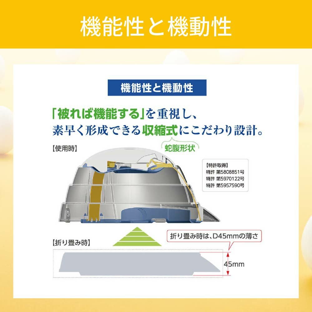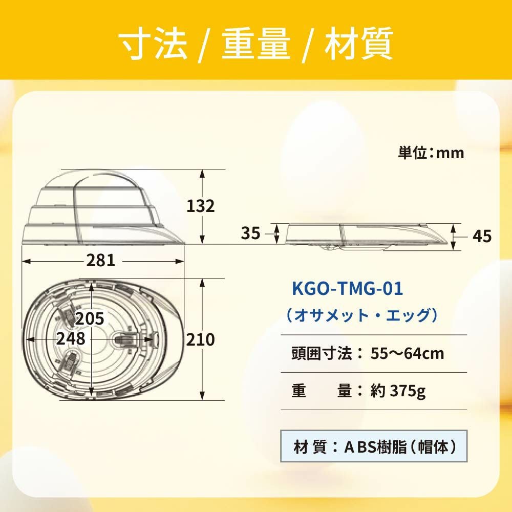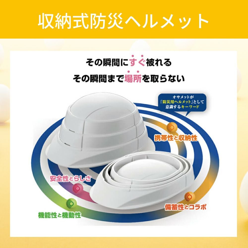 他の画像を見る 卵殻使用でCO2を約20%削減!オサメットの機能はそのまま、やさしい色合いと環境へのやさしさを両立した「オサメット・エッグ」 防災ヘルメット オサメットエッグ 10個 オサメット A4サイズ 防災用ヘルメット 国家検定品合格品 日本製 飛来・落下物 KAGAヘルメット 折りたたみヘルメット KGO-TMG-01 加賀産業 公式サイト特別価格 ¥ 44,412 税込 詳細を見る お気に入りに登録する