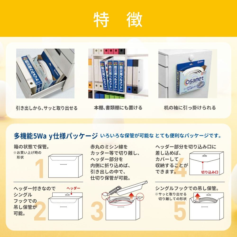 他の画像を見る 卵殻使用でCO2を約20%削減!オサメットの機能はそのまま、やさしい色合いと環境へのやさしさを両立した「オサメット・エッグ」 防災ヘルメット オサメットエッグ 20個 オサメット A4サイズ 防災用ヘルメット 国家検定品合格品 日本製 飛来・落下物 KAGAヘルメット 折りたたみヘルメット KGO-TMG-01 加賀産業 公式サイト特別価格 ¥ 83,495 税込 詳細を見る お気に入りに登録する