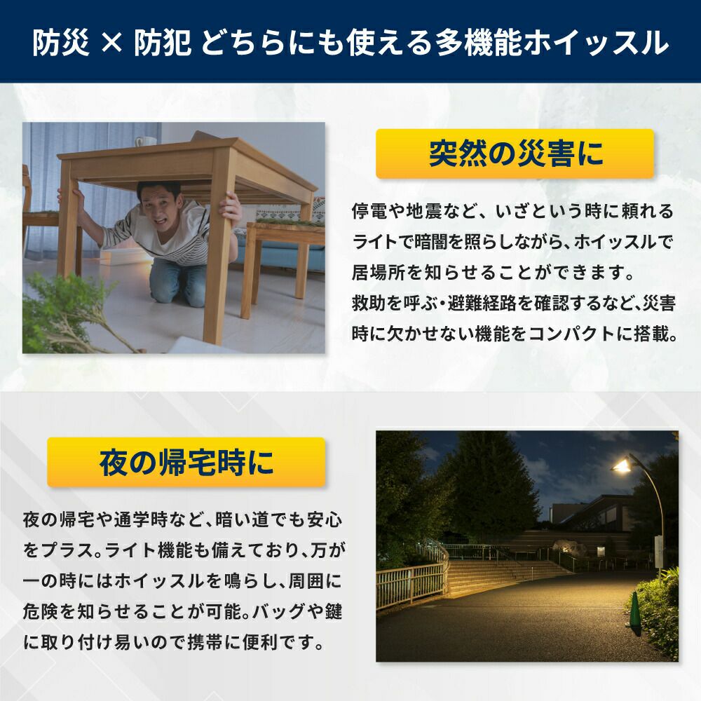他の画像を見る 防犯・防災・緊急時に!野外活動の合図に!携帯に便利なキーホルダー付き!ライト機能も備え、暗い場面での確認にも役立ちます。 ホイッスルdeライト 1個 防災グッズ ホイッスル ライト 防犯 緊急時 救助信号 夜間 キーホルダー 地震対策 ミニライト アウトドア 笛 防犯グッズ 防災 震災 地震 災害 女性 メール便15個まで 公式サイト特別価格 ¥ 177 税込 詳細を見る お気に入りに登録する