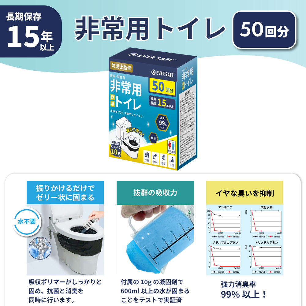 ポータブルトイレ 折りたたみ簡易トイレ ポータブル 3色 簡易トイレ50回分 + 備蓄用トイレットペーパー BOX型 組立式 防災用品 非常用 OKT02L EVERSAFE