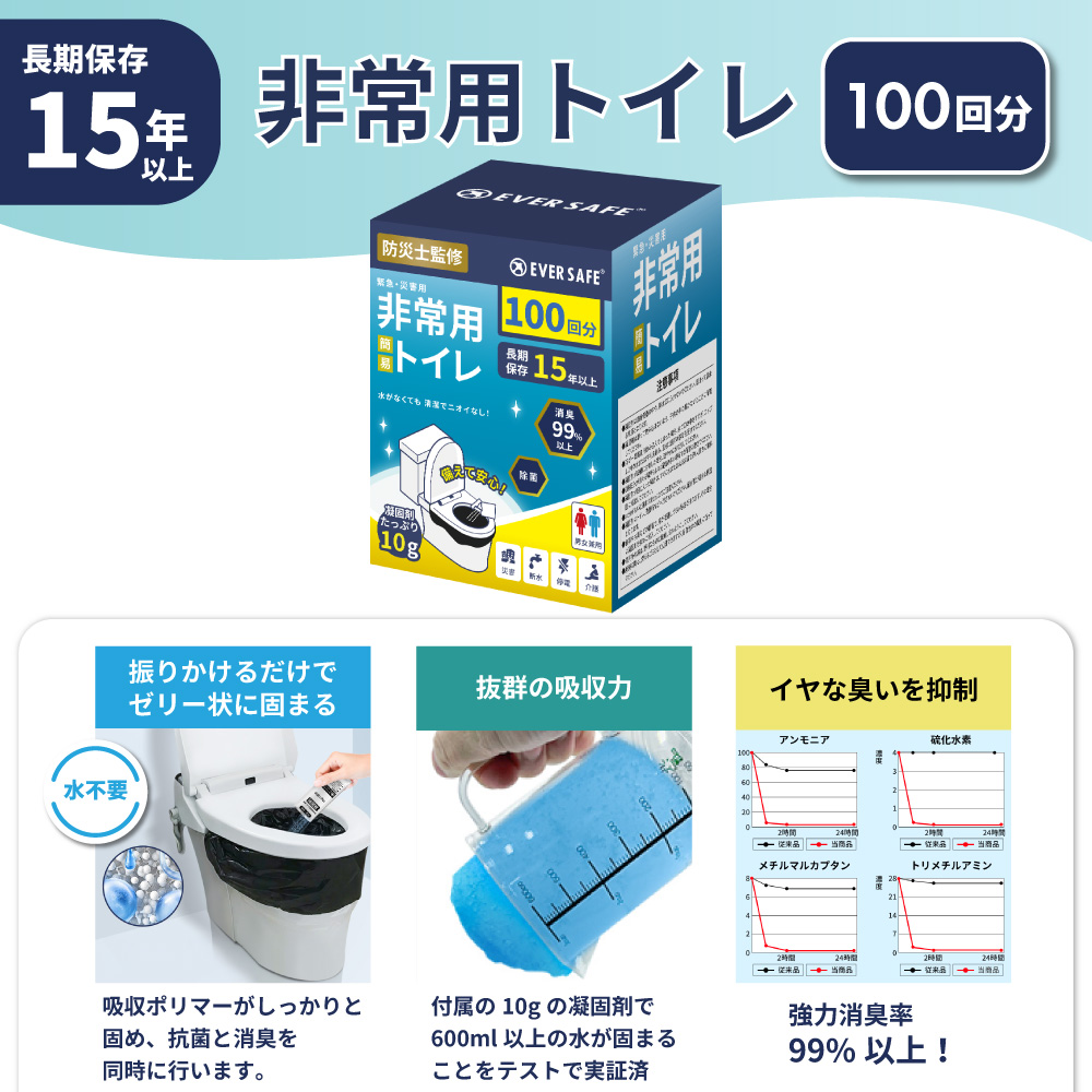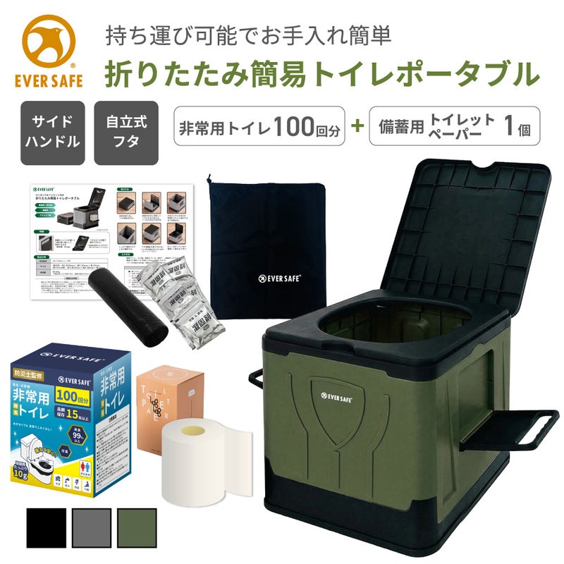 ポータブルトイレ 折りたたみ簡易トイレ ポータブル 3色 簡易トイレ100回分 + 備蓄用トイレットペーパー BOX型 組立式 防災用品 非常用 OKT02L EVERSAFE