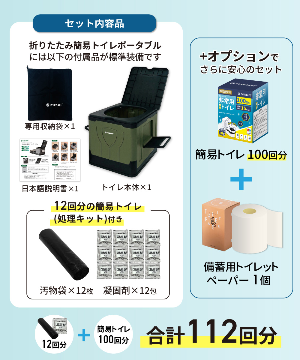 4. ポータブルトイレ 折りたたみ簡易トイレ ポータブル 3色 簡易トイレ100回分 + 備蓄用トイレットペーパー BOX型 組立式 防災用品 非常用 OKT02L EVERSAFE