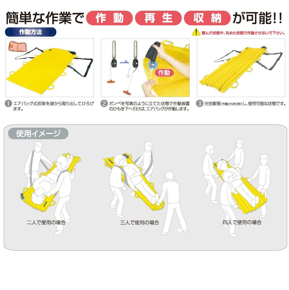 他の画像を見る 約3秒で膨らむ、エアバック方式!搬送しやすく、乗り心地も抜群 エアバッグ式担架 エクストレッチャー 収納バッグ付 公式サイト特別価格 ¥ 57,200 税込 詳細を見る お気に入りに登録する