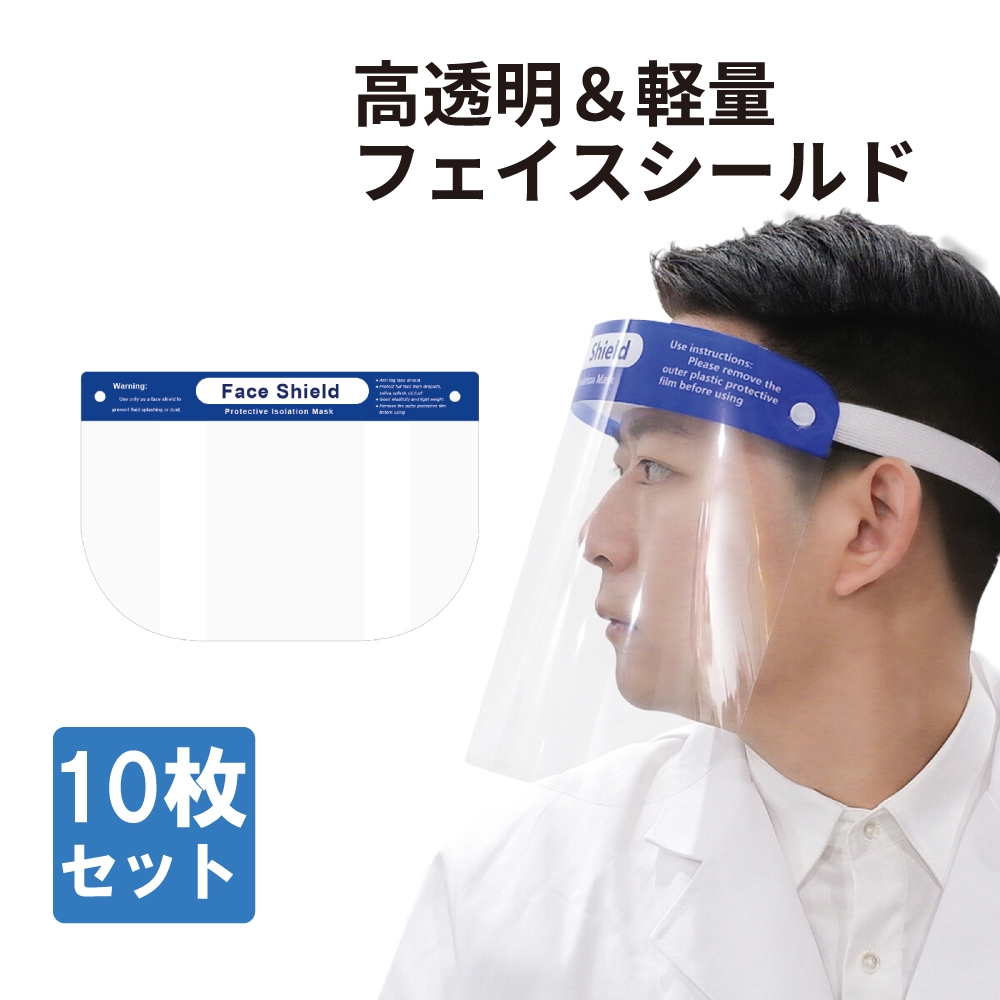 【10枚セット】高透過 超軽量 曇り止め 飛沫感染防止 フェイスシールド 10枚セット 飛沫防止 軽量 洗える メガネ併用可能