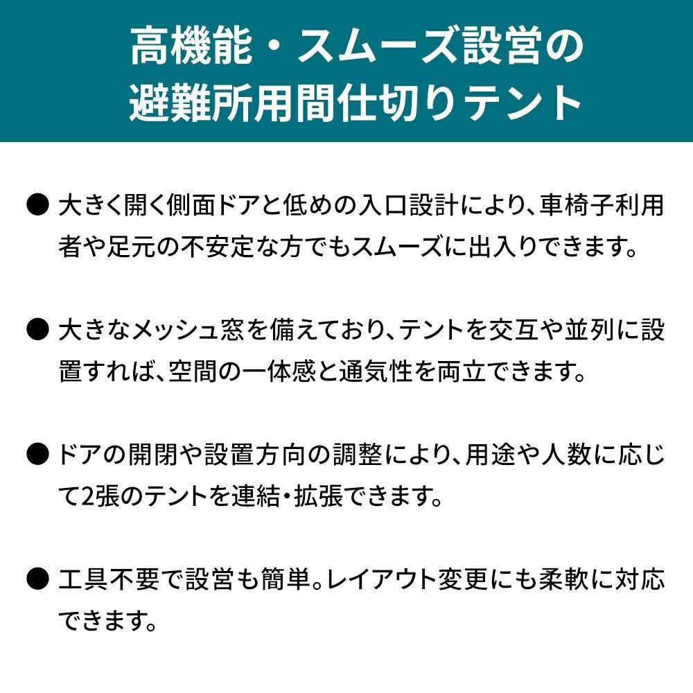 他の画像を見る プライバシーと通気性を両立した、安心できる避難所空間の実現 避難所での快適な生活を支える、使いやすく機能的な設計 防災用 避難個室テント 180 20個 防災グッズ シェルターテント プライバシー ファミリー 大型 軽量 パーティション 災害時 避難所 屋内 屋外 持ち運び コンパクト 抗菌 防水 UVカット 寒さ対策 車椅子 KO395 RABLISS 公式サイト特別価格 ¥ 624,910 税込 詳細を見る お気に入りに登録する