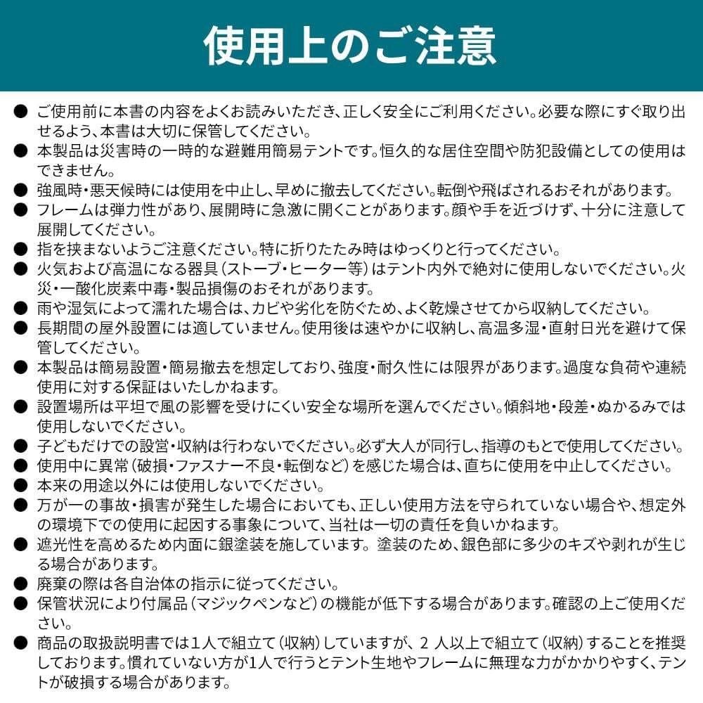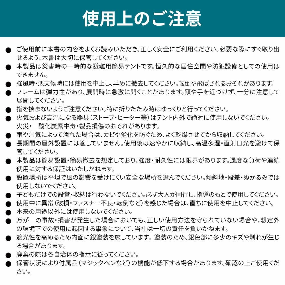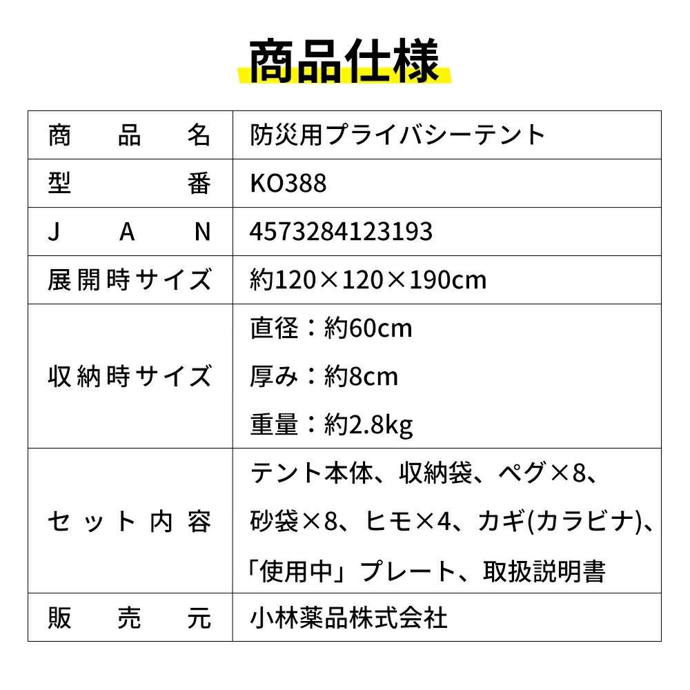 他の画像を見る 鍵付きで安心な災害時用プライベートテント 避難所で更衣室や仮設トイレにも使える 防災用 プライバシーテント 4個 防災グッズ プライベート 簡易トイレ 災害 災害時 屋外 屋内 避難 避難所 トイレ 衛生 更衣室 プライバシー 抗菌 防水 UVカット カギ付き 防犯 KO388 RABLISS 公式サイト特別価格 ¥ 45,144 税込 詳細を見る お気に入りに登録する