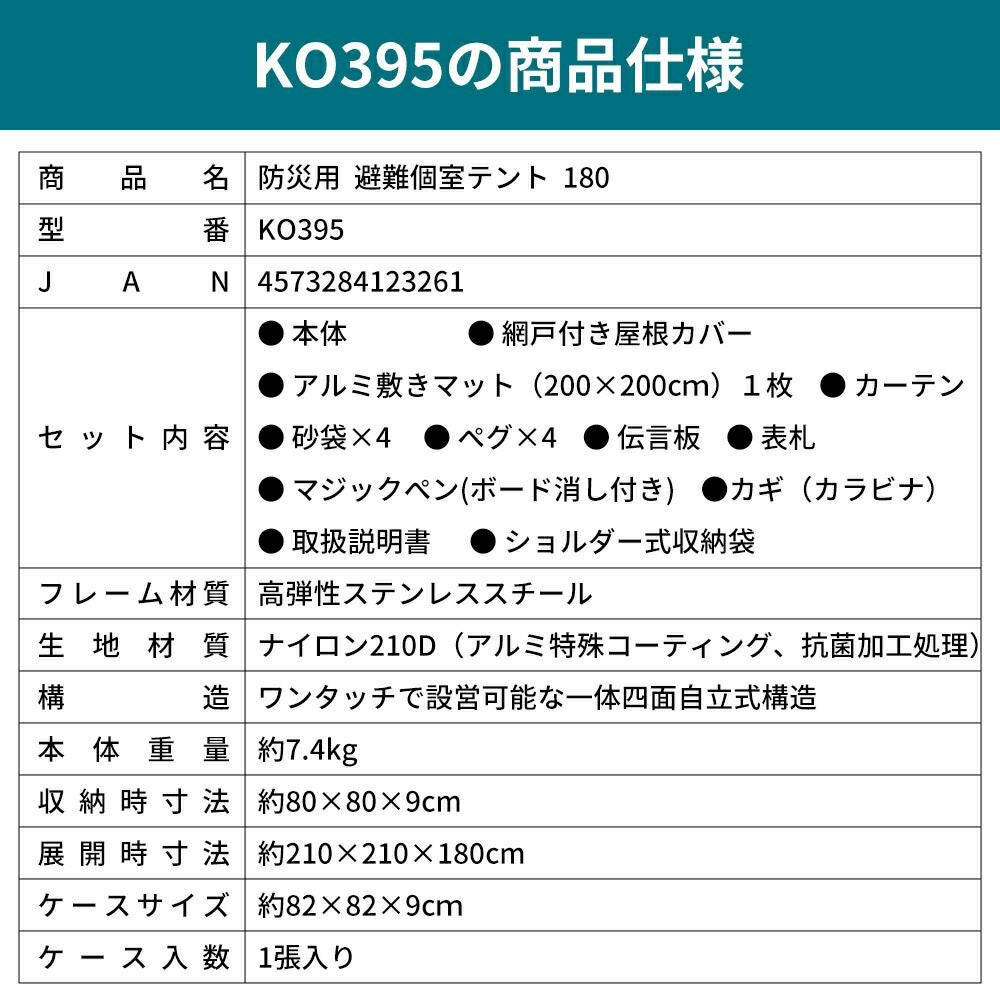 他の画像を見る 工具不要、ワンタッチ展開、収納も簡単な間仕切りテント。避難所生活のプライバシーを確保し、安心な空間を提供! 防災グッズ 防災用 避難個室テント180(屋根なしタイプ) 20個 間仕切りテント ワンタッチ 工具不要 簡単設営 プライバシーカーテン付き 避難所 KO409 RABLISS 公式サイト特別価格 ¥ 576,840 税込 在庫切れ 詳細を見る お気に入りに登録する