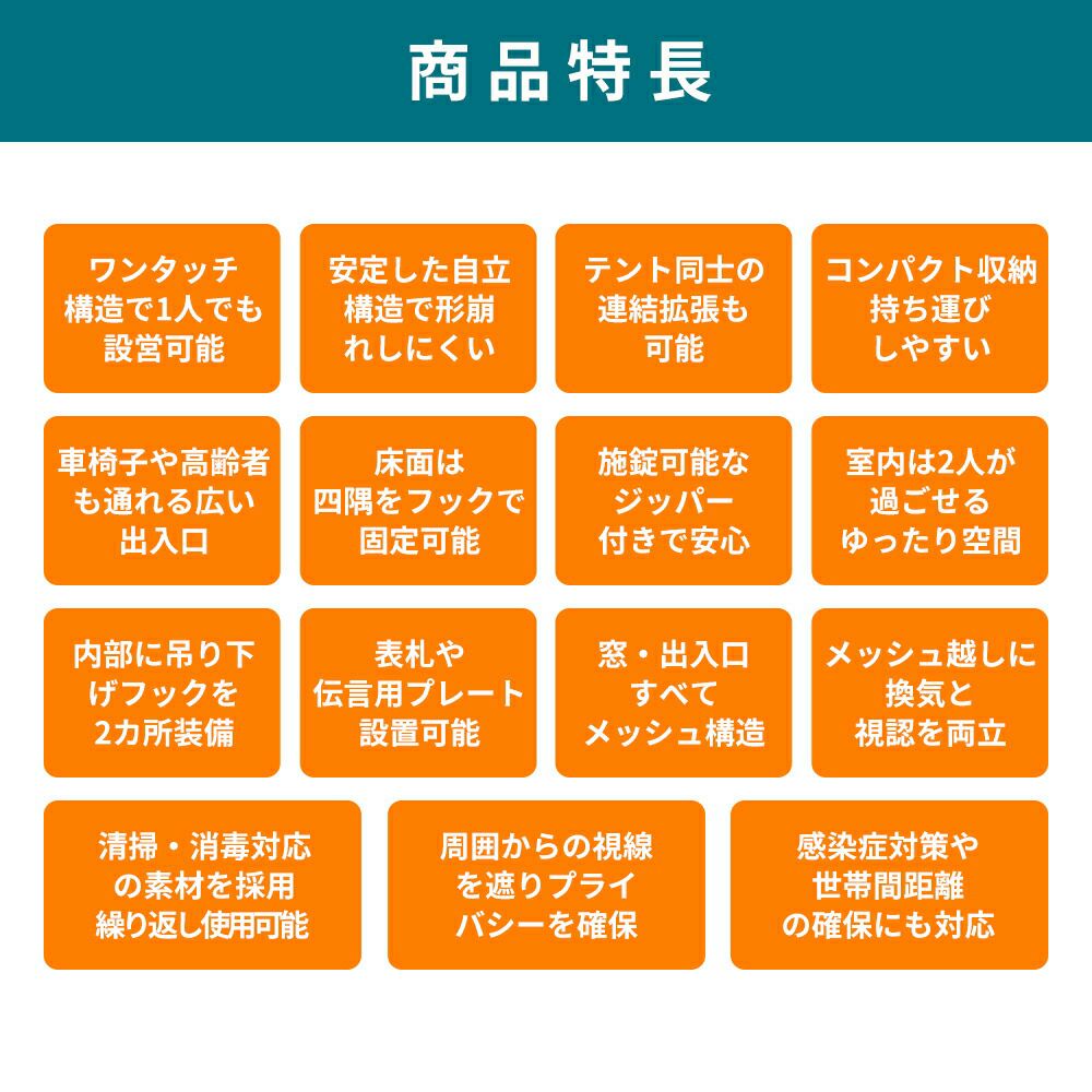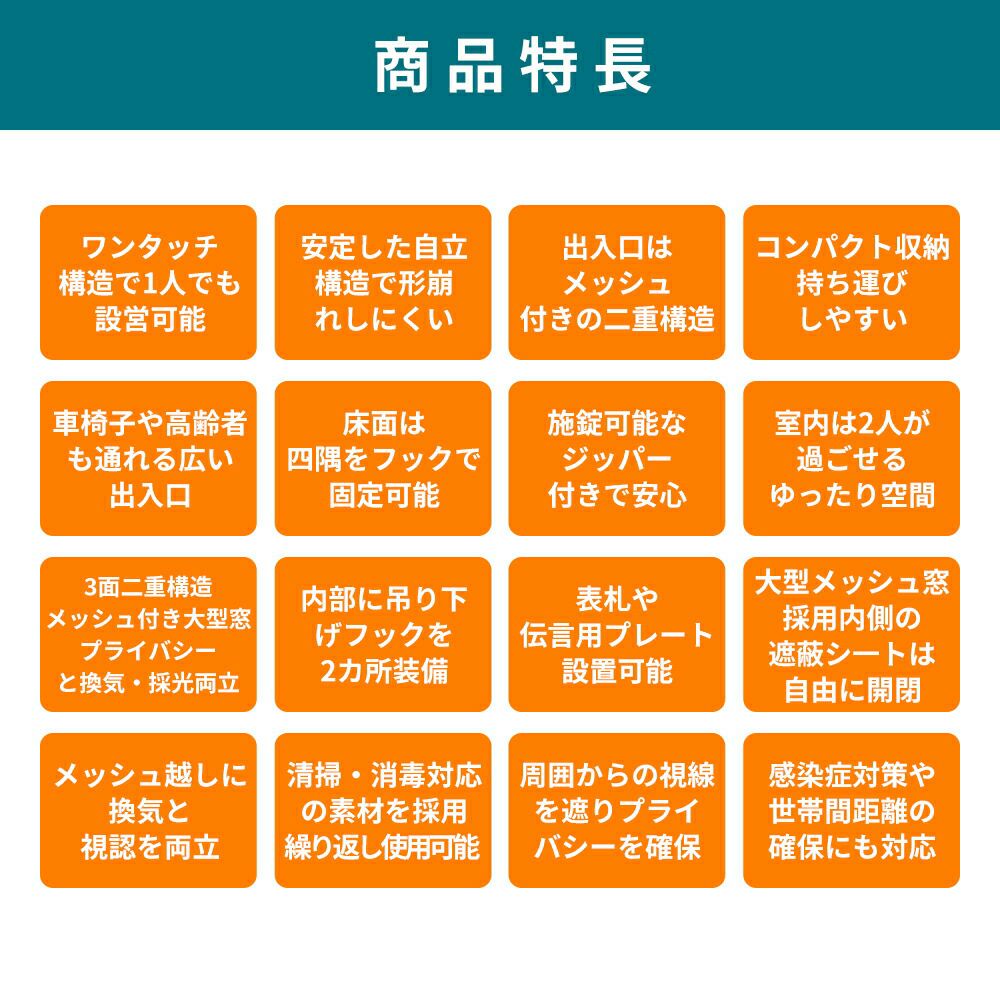 他の画像を見る 工具不要で簡単設営! 隙間なく防水・防塵の六面一体型広々テント 防災グッズ 防災用 六面一体型テント 20個 テント 防水 防塵 一体型 コンパクト 車椅子 伝言プレート 施錠可能 ワンタッチ KO401 RABLISS 公式サイト特別価格 ¥ 700,150 税込 在庫切れ 詳細を見る お気に入りに登録する