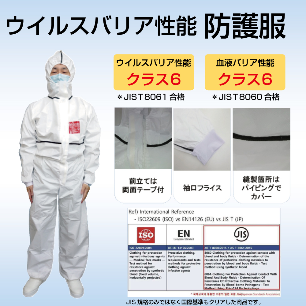 ISO、ENなどの国際基準もクリアした高性能防護服