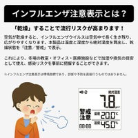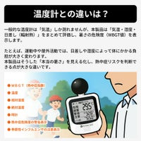 本製品は黒球式WBGT測定で暑さ危険度を表示し、絶対湿度から乾燥度を判定してインフルエンザ注意レベルも確認できます。