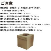 【セット内容】 トイレ本体:1個 汚物袋:5回分 凝固剤:5回分 【材質】 本体:ダンボール 汚物袋:ポリエチレン 【サイズ】 便座サイズ:30cm×35cm×高さ30cm 梱包時重量:1.2kg サイズ:34.5cm×6.5cm×高さ62.5cm