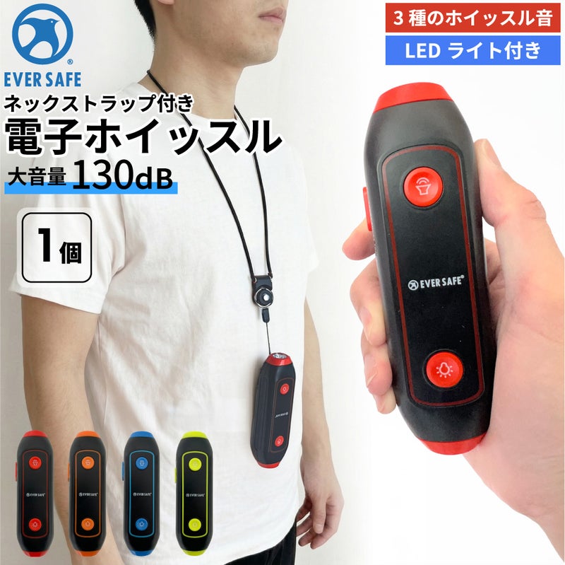 防災グッズ 電子ホイッスル ネックストラップ付き 4色 1個 笛 懐中電灯 大音量 ホイッスル 130db 警笛 アラーム LEDライト 防犯 防災 審判 軽量 電池式 ストラップ 熊対策 警備 衛生 EW01 EVERSAFE